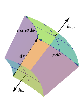 Figure12.4.Computing the radial contribution to the flux through a small box in spherical coordinates.