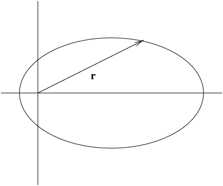 The figure below shows the position vector \(\vec r\) and the orbit of a “fictitious” reduced mass \(\mu\text{.}\)